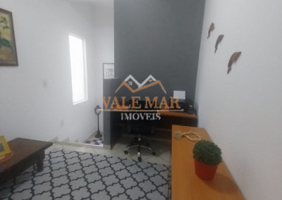 Pavimento Superior com escritório, 2 quartos, banheiro social, suíte com armários, ar condicionado e sacada.